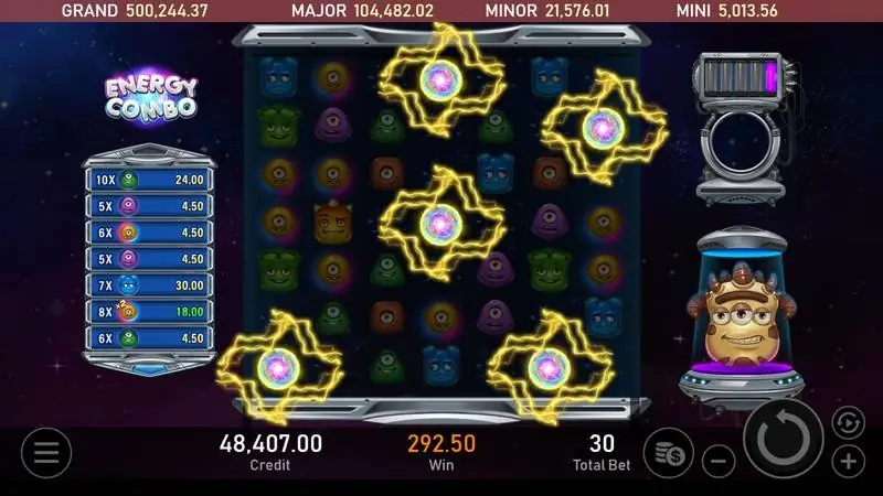 由於掉落式玩法與高頻觸發連擊的設計,《能量外星人》的遊玩節奏相當緊湊而充滿期待感。即便是低投注金額,也可能透過連鎖反應贏得高額獎金,非常適合喜歡快節奏與高爆發機會的玩家。每一次旋轉都充滿無限可能,讓你欲罷不能!
