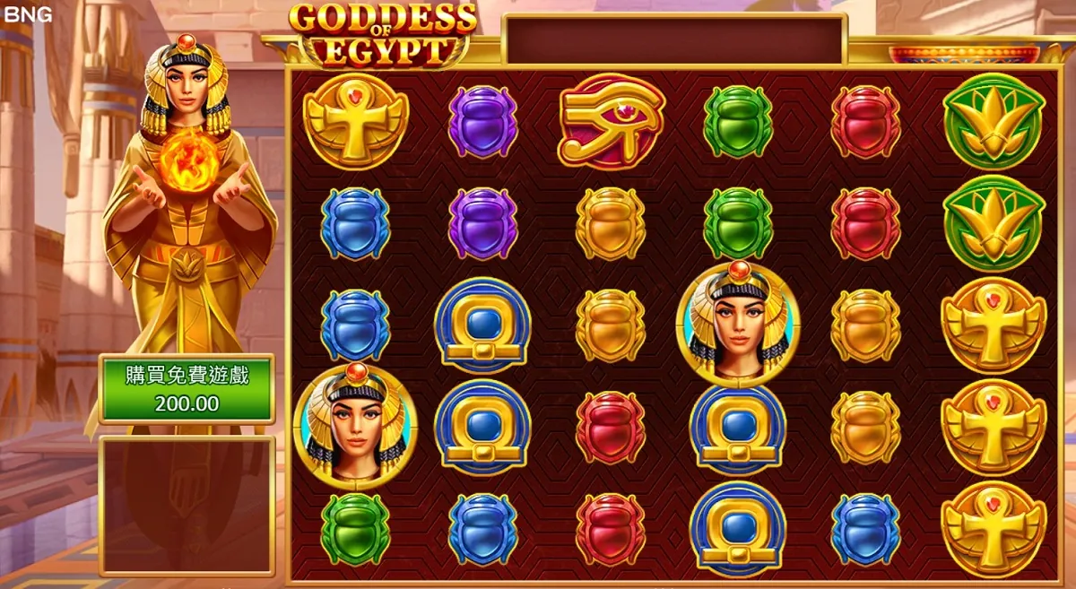 《BNG電子埃及女神老虎機》是一款設有5軸和最多25條支付線的電子老虎機遊戲,玩家可以根據自己的喜好和預算選擇不同的投注金額。遊戲的目標是通過旋轉輪盤,形成各種符號的組合,從而獲得相應的賠付。每次旋轉後,玩家有機會觸發各種特殊功能,這些功能將極大提升玩家的獲利潛力,尤其是在免費旋轉模式和清除式掉落機制的幫助下。
