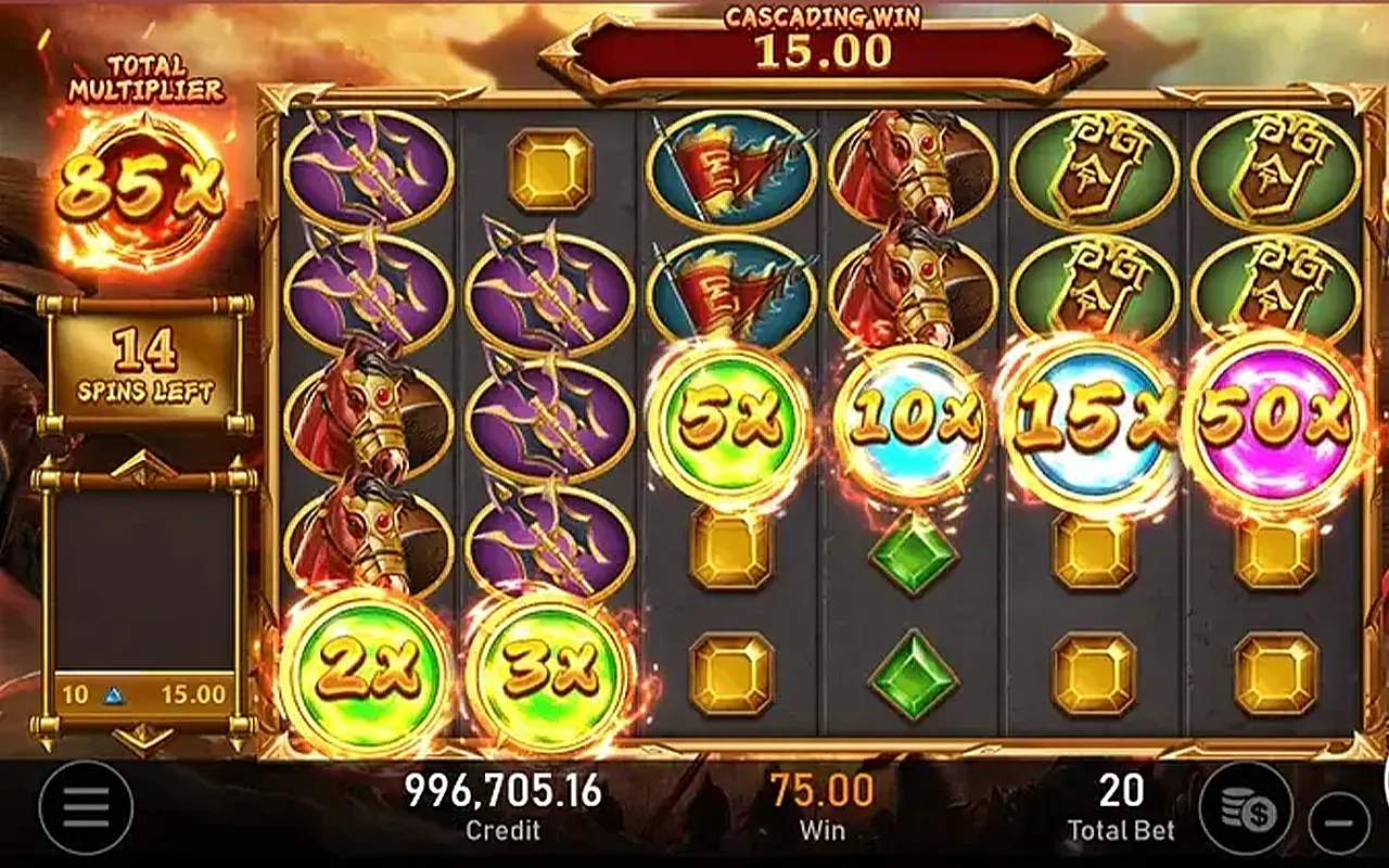 - 呂布符號的基礎賠率為 50倍至100倍,並隨著符號數量的增加進一步提升。