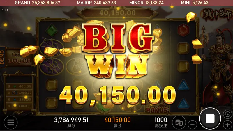 - 額外旋轉機會:若在免費遊戲中再次出現3個戰神呂布符號,將追加免費旋轉次數,延續贏分的刺激。