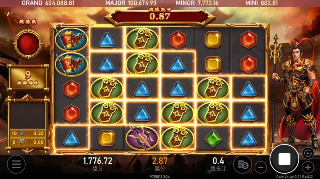 - 每種符號的賠率不同,高價值符號(如呂布符號)賠率較高。