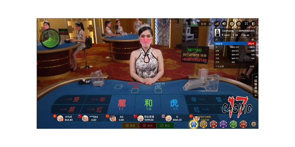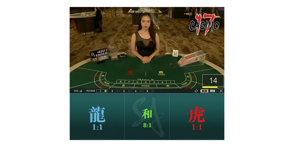 - 遊戲流程:荷官發牌到“龍”和“虎”區域,玩家可選擇投注“龍”、“虎”或“和”。