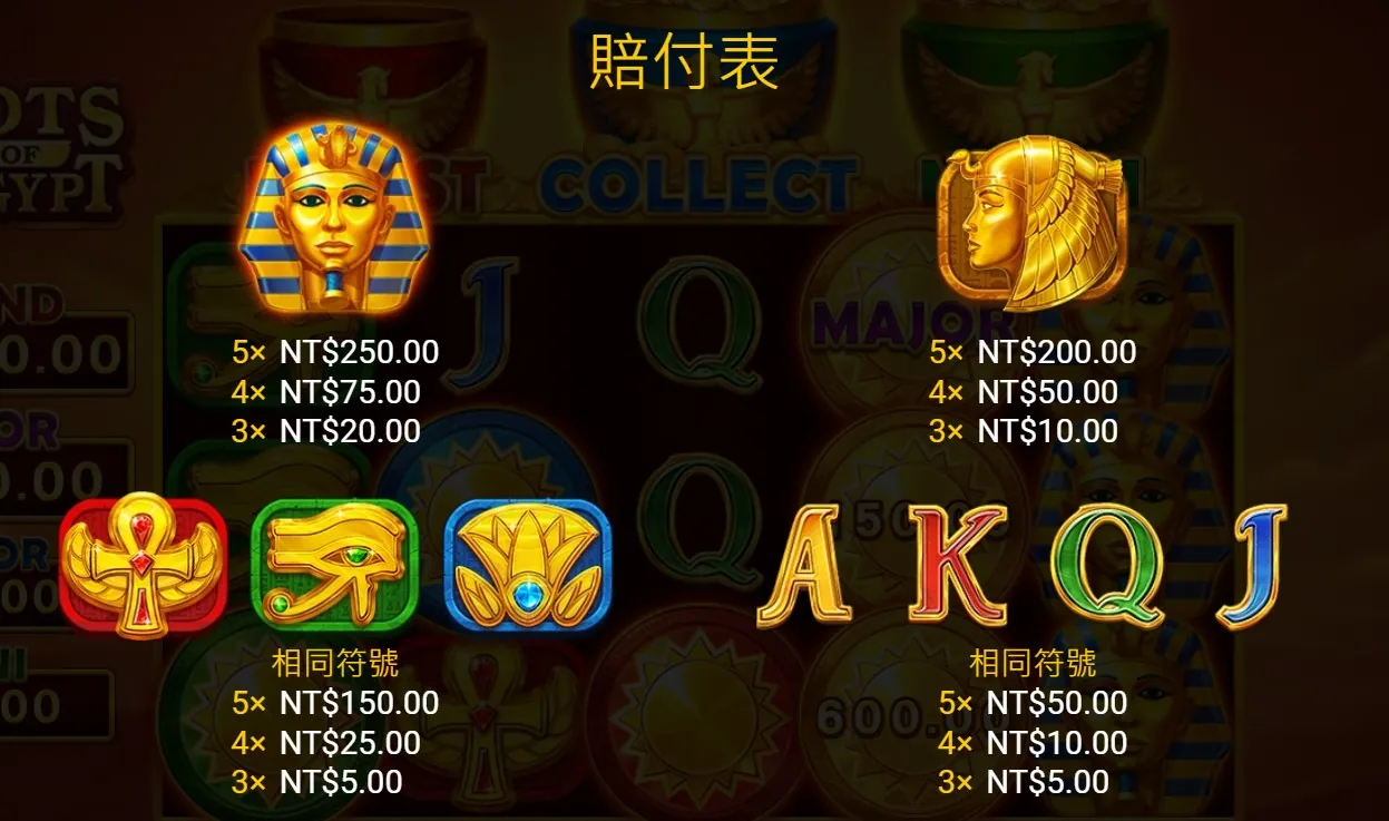 • 💸 賠率依符號不同而異:高級符號如法老、金字塔等給予高賠率,普通符號如字母、圖騰則給予較低獎金