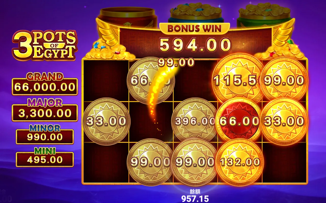 在《埃及三寶壺》中,玩家不只是靠轉出連線賺錢,而是透過多重獎勵機制,讓整體遊戲過程更有期待感與爆發潛力。以下是遊戲中幾大主要的獎金來源與特色解說: