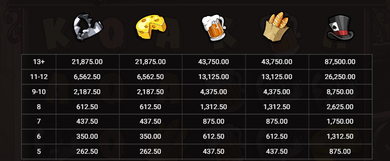 《強盜寶藏老虎機》采用了標準的5滾輪3列設計,這是大多數老虎機遊戲的基本結構。這種設計使得遊戲的運行簡單而直觀,同時也提供了足夠的空間來設計多樣的遊戲功能和符號。